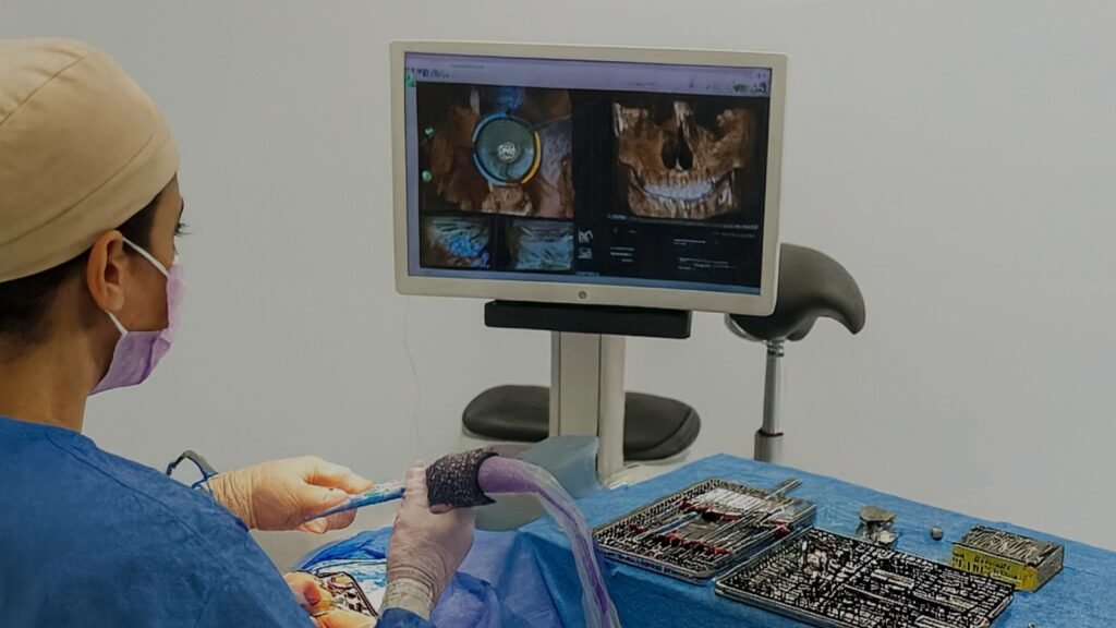 Pose des implants dentaires sous anesthésie locale, avec une attention particulière à votre confort durant toute la procédure. L’intervention est réalisée à l’aide d’un guide chirurgical par navigation dynamique (XGuide), ce qui permet un placement des implants avec une grande précision grâce à une planification individualisée.